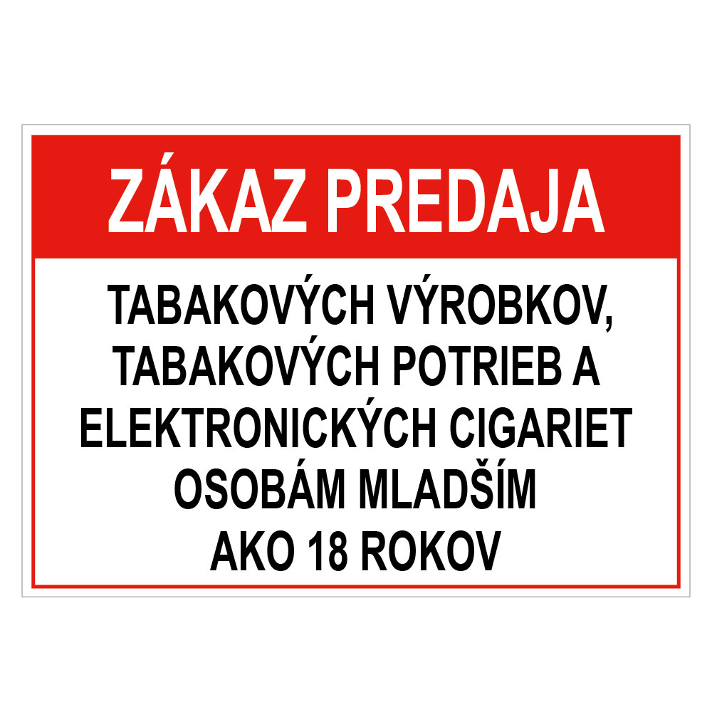 Zákaz predaja tab. výr., potrieb a el. cigariet osobám mladším 18 - bezpečnostná tabuľka, plast 2 mm, A5