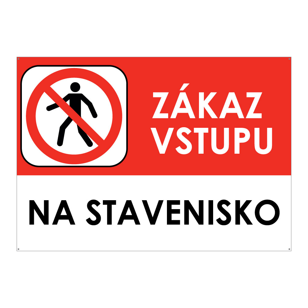 Zákaz vstupu na stavenisko - bezpečnostná tabuľka s dierkami, plast A4, 2 mm