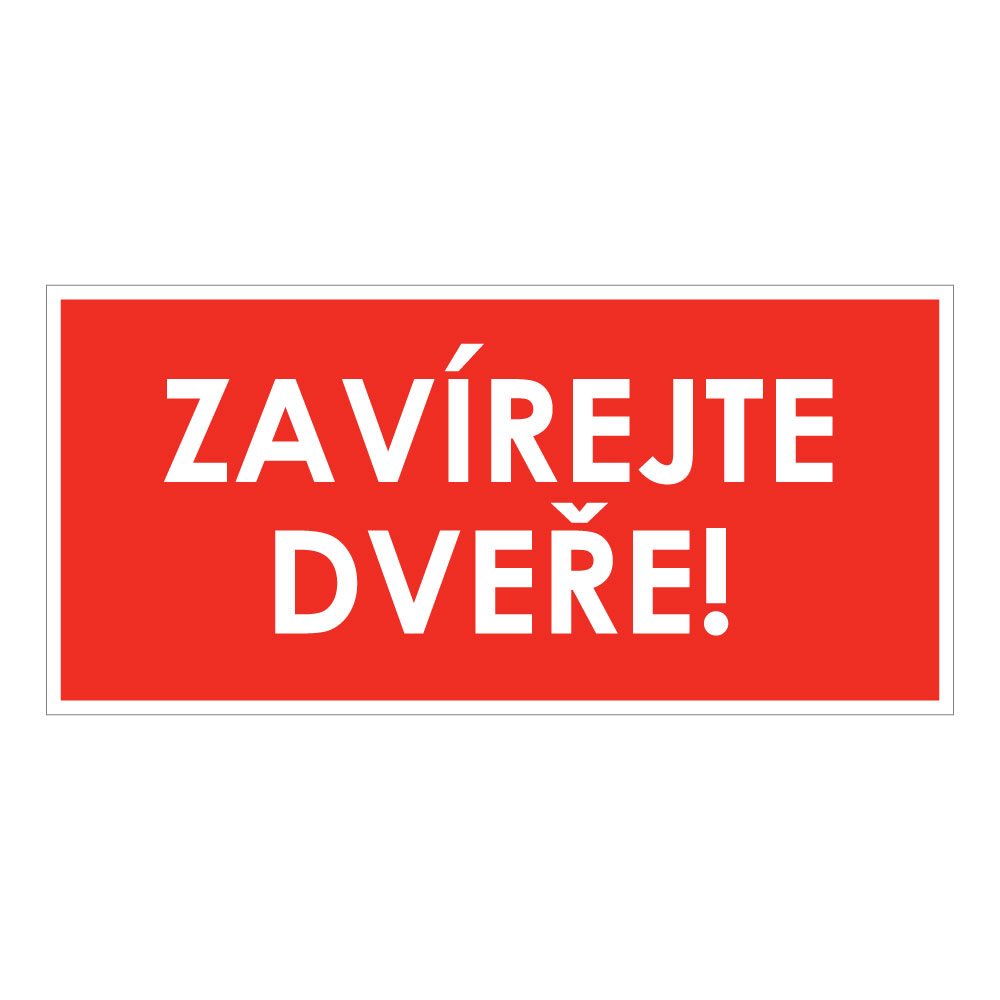 ZAVÍREJTE DVEŘE!, červená, samolepka, 190x90 mm