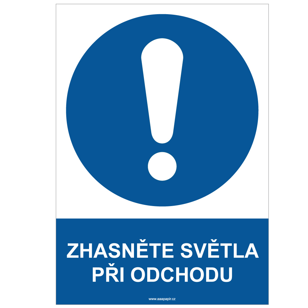 ZHASNĚTE SVĚTLA PŘI ODCHODU - bezpečnostní tabulka, samolepka A4