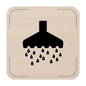 Znak drzwi - Prysznic, płyta drewniana, 80 x 80 mm